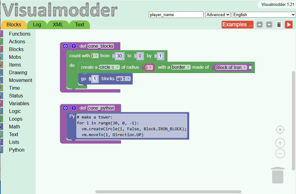 Visualmodder combines ease of use, flexibility, and real-world programming concepts — all within the familiar and engaging world of Minecraft.
