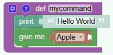 4. From Items take a block “give me Apple”